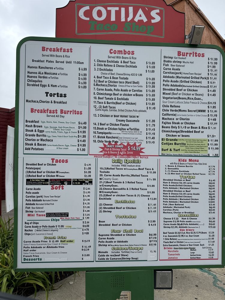 Welcome to Cotijas Taco Shop Colton, a vibrant Mexican eatery located at 1089 E Washington St, Colton, CA. This hidden gem impresses with a menu that celebrates bold flavors and generous portions. Start your day with their enticing Breakfast Burritos, featuring mouth-watering options like the Hash Brown Burrito packed with eggs, sausage, and cheese, or go big with the Grande Breakfast Burrito, perfect for sharing.